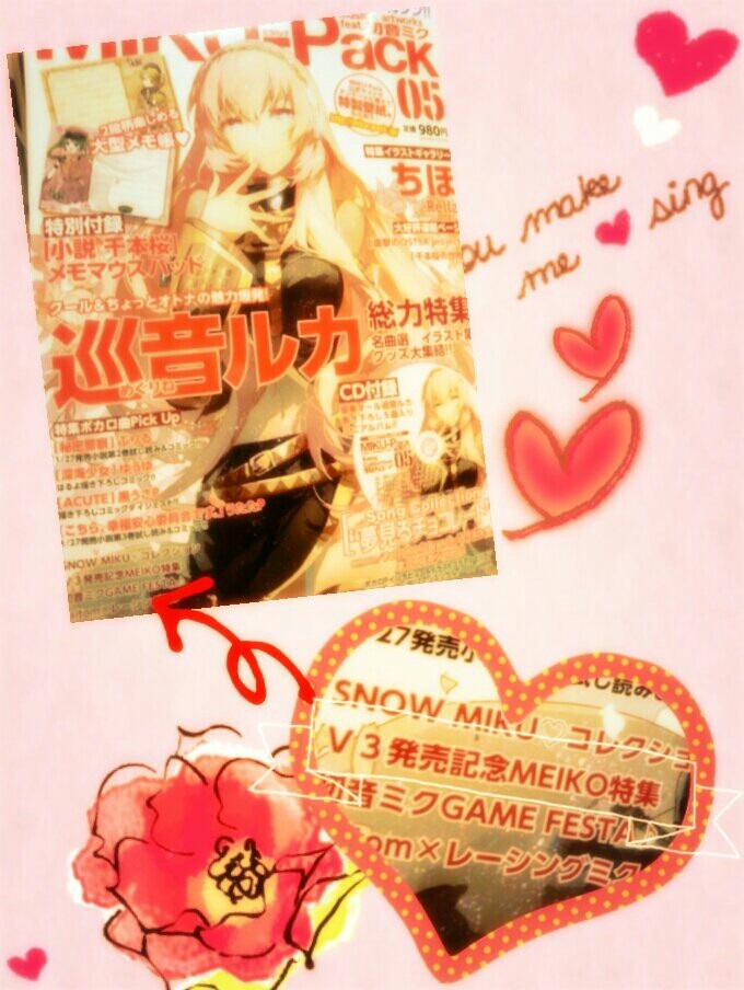 (untitled) 【MIKU-Pack05】ルカ特集を全面に推しつつ、MEIKOのV3発売記念特集が5頁も組まれています!初期〜最近のものまで絵あり曲紹介ありコラムあり、MEIKOがぎゅっと詰まっています!この豪華さで980円!さぁ皆本屋へダッシュ!!